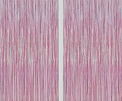 2 Pack Glitter Pink Backdrop - 3.28 FT x 7.05 FT, perfect for birthday and Valentine\'s Day celebrations. Includes foil streamer tinsel curtains for a glamorous photo backdrop.