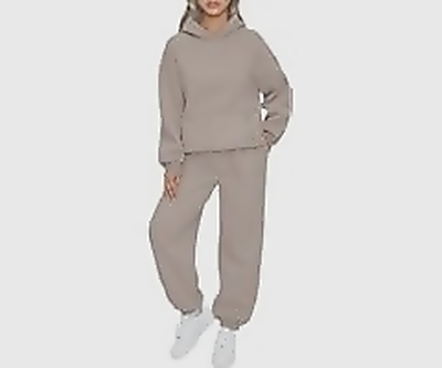 Comfortable and stylish 2-piece lounge set featuring an oversized hoodie and baggy sweatpants with pockets, perfect for fall.