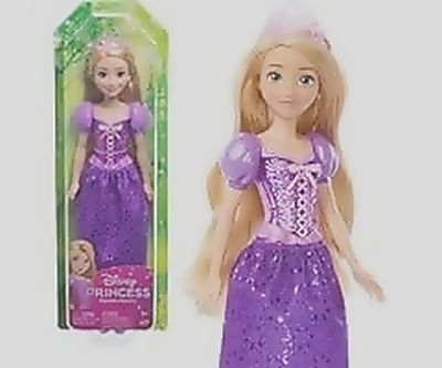 Disney Princess Rapunzel Fashion Doll with sparkling look, blonde hair, blue eyes, and tiara accessory.