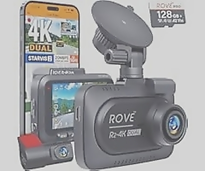 ROVE R2-4K DUAL Dash Cam with 4K resolution, STARVIS 2 sensor, 128GB card included, and fast 5G WiFi.