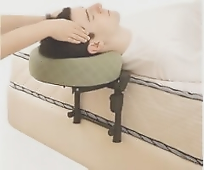 Portable and adjustable massage headrest designed for comfort during home massages. Perfect for face-down relaxation on any mattress.