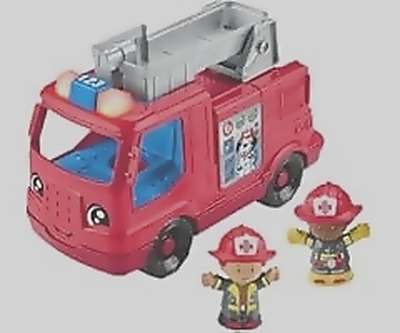 Musical push-along fire truck with 2 firefighter figures for toddlers 1+ years.