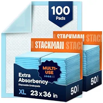 Chucks Pads Disposable are large super absorbent underpads designed for adult incontinence. Each pad measures 23\"x36\" and comes in a convenient 100-pack. These leak-proof protective bed pads are perfect for adults, kids, and pets, making them ideal for dog and puppy training. The high absorbency ensures comfort and cleanliness, while the disposable feature makes cleanup a breeze.