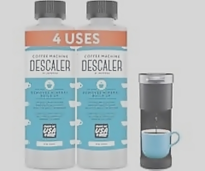 Universal descaling solution for coffee machines. 2 Pack with 2 uses per bottle, made in the USA.