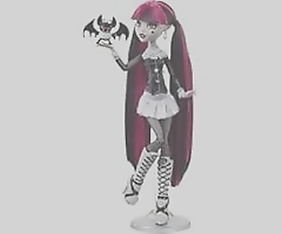 Collectible Draculaura doll in black and white with posters.