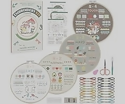 Comprehensive embroidery kit with 106 patterns, 86 pieces, and tutorials for beginners.